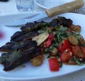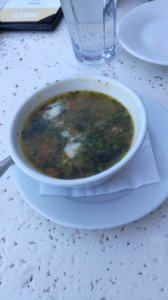 Vacsorázni a hotelhez közeli olasz étterembe vacsoráztunk. Itt szeles, hüvös idő volt, és a fáradtságtól is kirázott minket a hideg, úgyhogy a menüt levessel kezdtük (Italian wedding soup ~ hasonló a magyar máj gombóc leveshez), majd steaket kértem magamnak, aztán zárásként pedig a jól ismert olasz tiramusut.